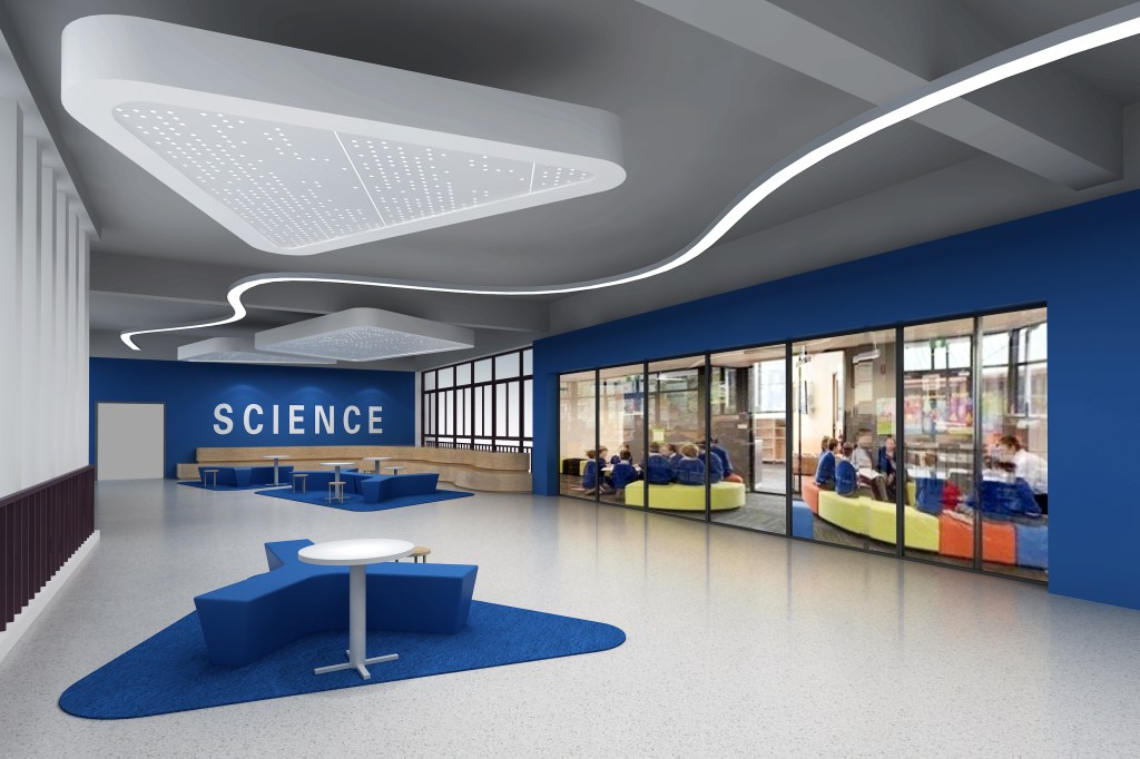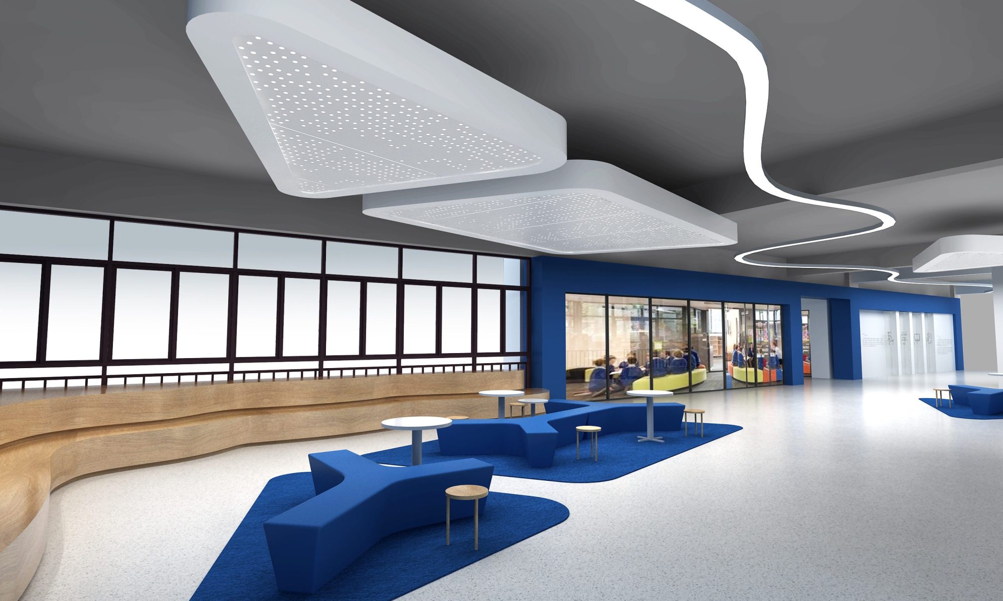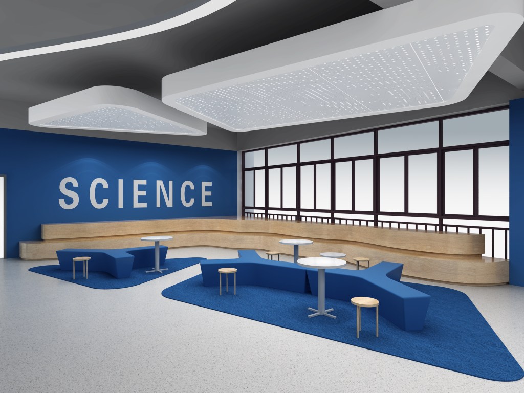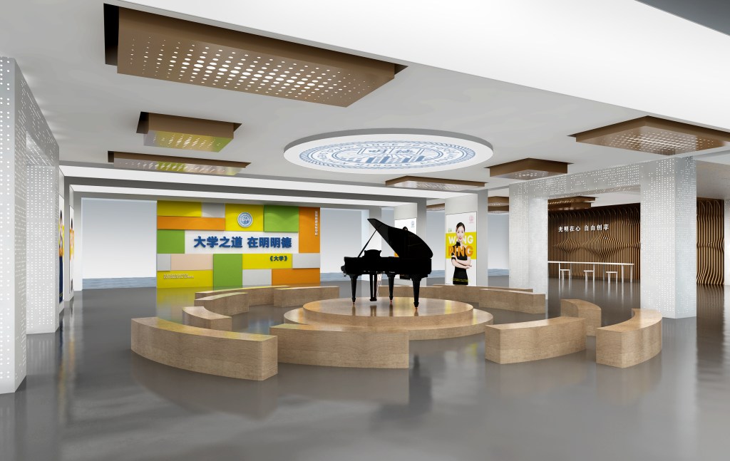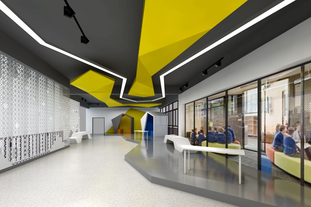 该项目的校方基金会坚持推行智慧教育,将科技引入教学而形成独特的校园文化。在此空间改造中,我们突出解决了之前传统的校园空间与创新的校园文化之间的脱节,通过一个个充满科技感和未来感的空间,使你无论身处校园的哪一个角落,都可以感受到学校的文化与特色,让空间变成了学校高识别度的名片。