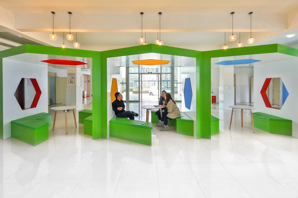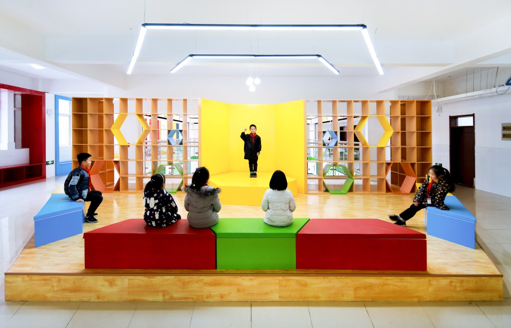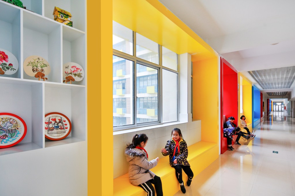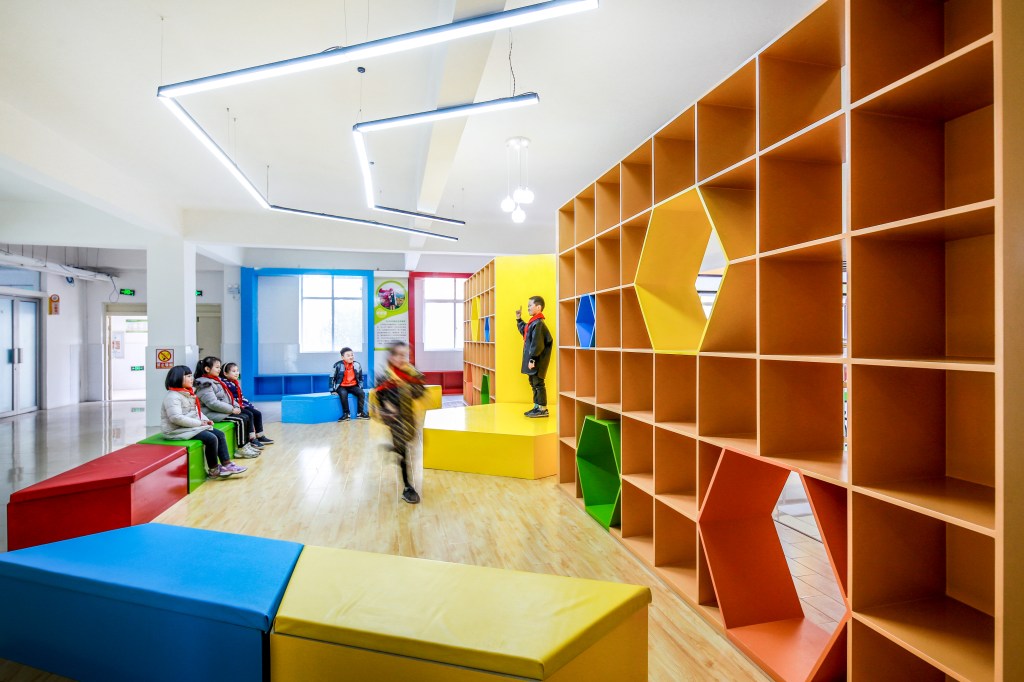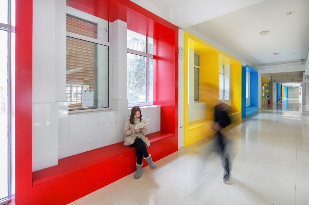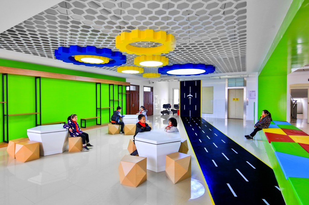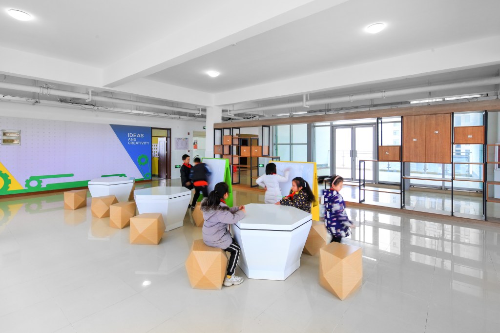 不同的教学活动需要不同的空间来配合,学校在逐步摒弃传统的填鸭式课程,取而代之的是以STEAM课程为代表的项目式、讨论式、小组式的教学活动,这也对教室提出了新的要求。经过建筑师的精心研究和设计,校园内的每一个空间,每一条动线都为师生之间、师师之间和生生之间在每天的日常生活中创造出更多交流的可能性,学生更容易接收老师的信息,老师也更容易观察到学生的日常活动。